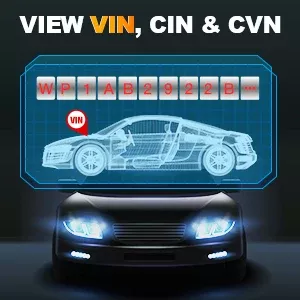 Dieses Codeleser-Autodiagnosetool kann die Fahrzeuginformationen abrufen, wie VIN (Fahrzeugidentifikationsnummer), CIN (Kalibrierungs-ID) und CVN (Kalibrierungs-Verifizierungsnummer), etc., die Benutzern Hilfe und Bequemlichkeit für Reparatur oder Teileaustausch bietet.